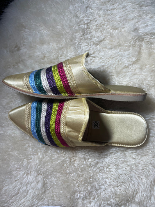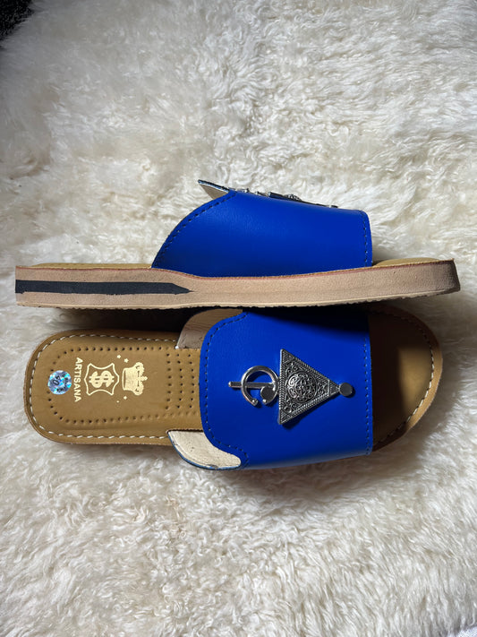 Babouches Fille - Cherbil - Bleu Saphir/Gold