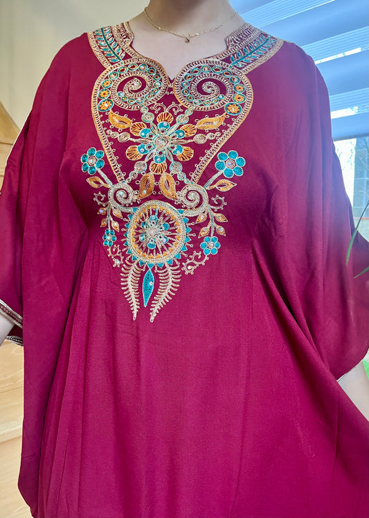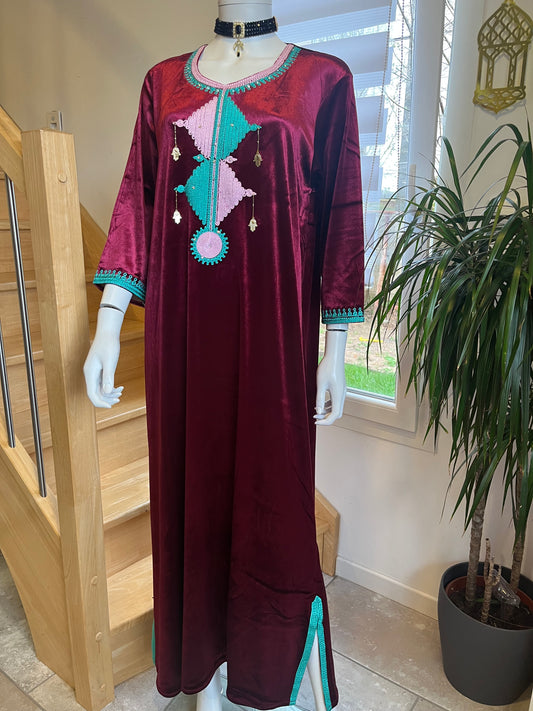Gandoura Velours - Bordeaux/Rose/Turquoise
