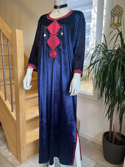 Gandoura Velours - Bleu/Rouge