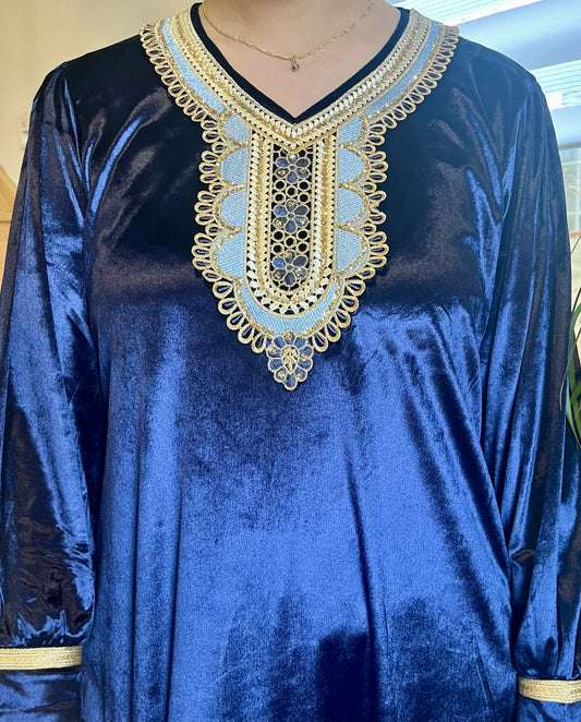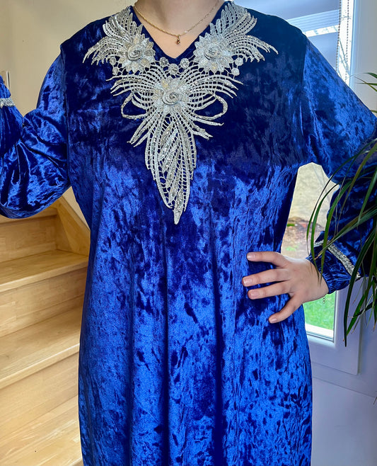 Gandoura Velours - Bleu Saphir/Argent